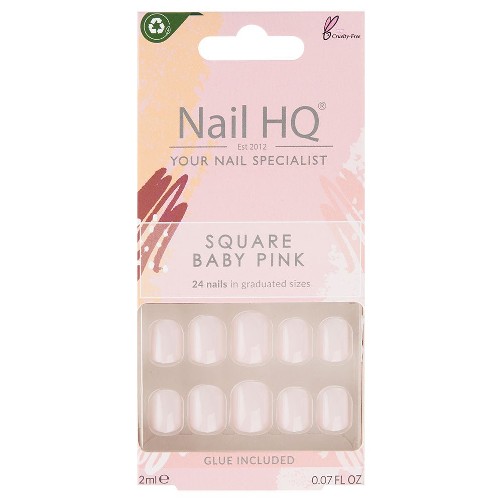 أظافر أكريليك سكوير (مربعة) بلون وردي فاتح (بيبي بينك) من HQ: أظافر لاصقة قوية ومتينة بجودة الصالون