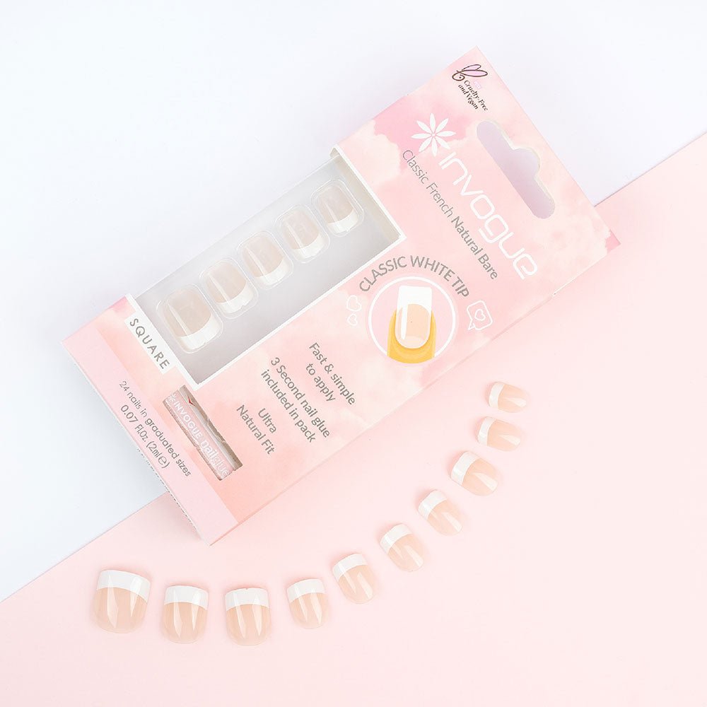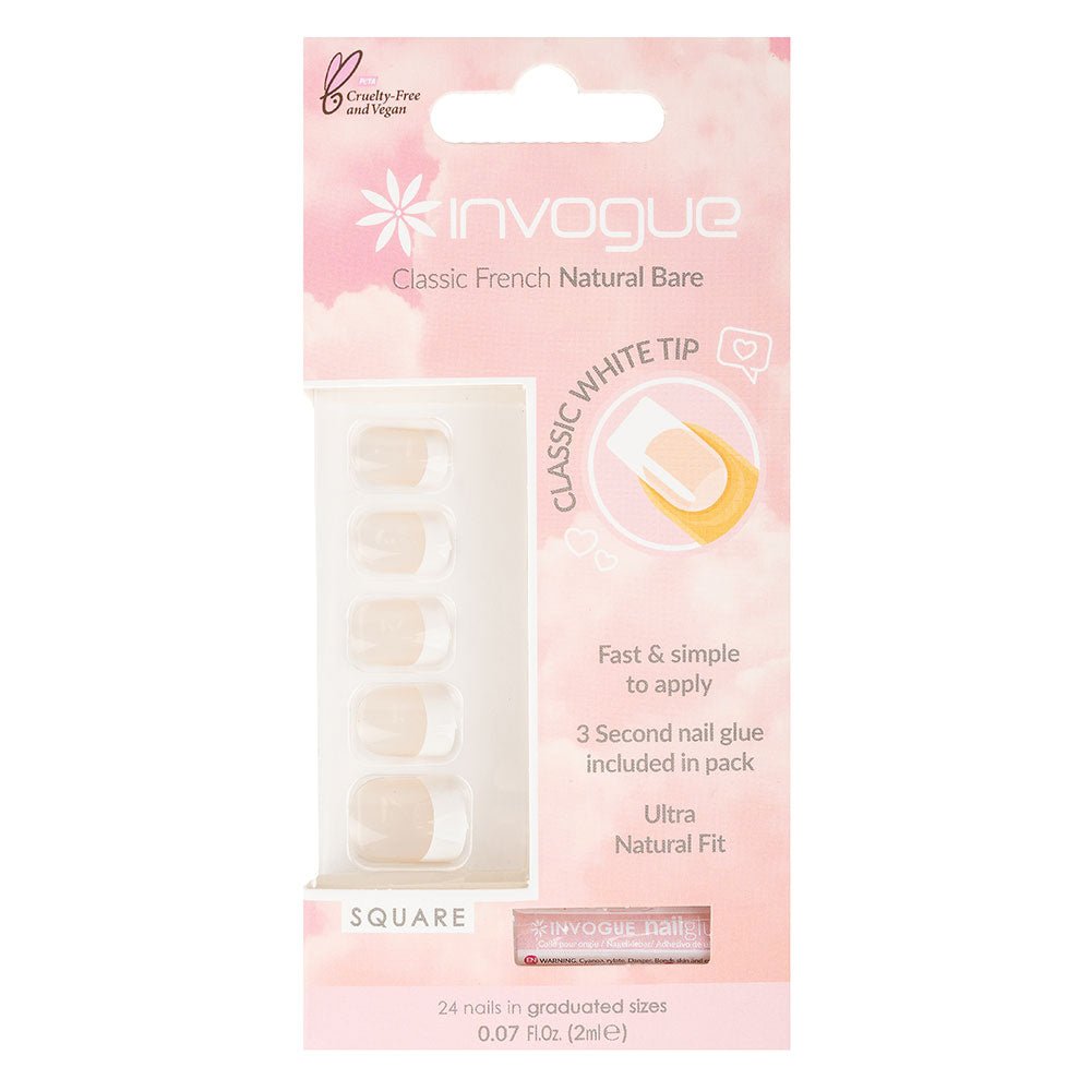 أظافر أكريليك سكوير (مربعة) بلون بار (طبيعي) من إنفوغ: أظافر لاصقة قوية بجودة الصالون