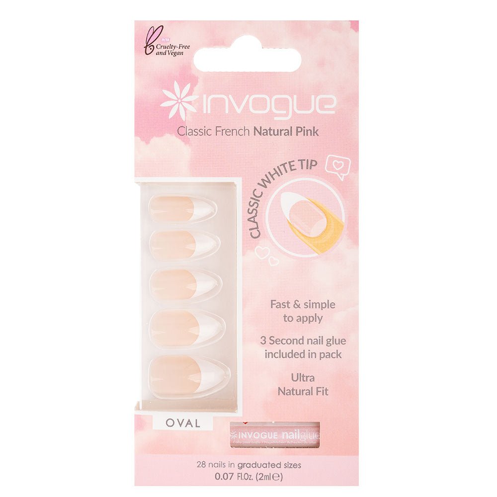 أظافر أكريليك أوفال (بيضاوي) بلون وردي من إنفوغ: أظافر لاصقة قوية بجودة الصالون